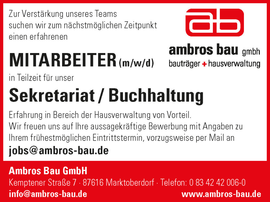 © Ambros Bau GmbH - Professionelle schlüsselfertige Erstellung von Wohn- und Gewerbeimmobilien und zuverlässige Hausverwaltung nach Maß in Marktoberdorf und Umgebung